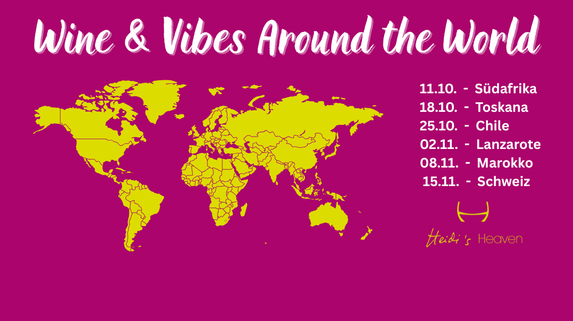 Wir entführen Dich in fremde Welten mit landestypischen Snacks, Musik, Bildern und unseren Weinen. Geniesse ein paar Urlaubsstunden bei uns.